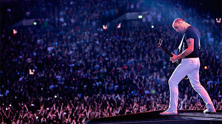 It features the original mono-block brass hardware and TB3 EQ. The pickups are moved to the custom positions that Chris prefers. The colour is also the original solid gloss FPPR red. Front red LEDs are fitted as a custom option. It sounds great on the 'UPRISING' track of the MUSE album 'The Resistance'. |