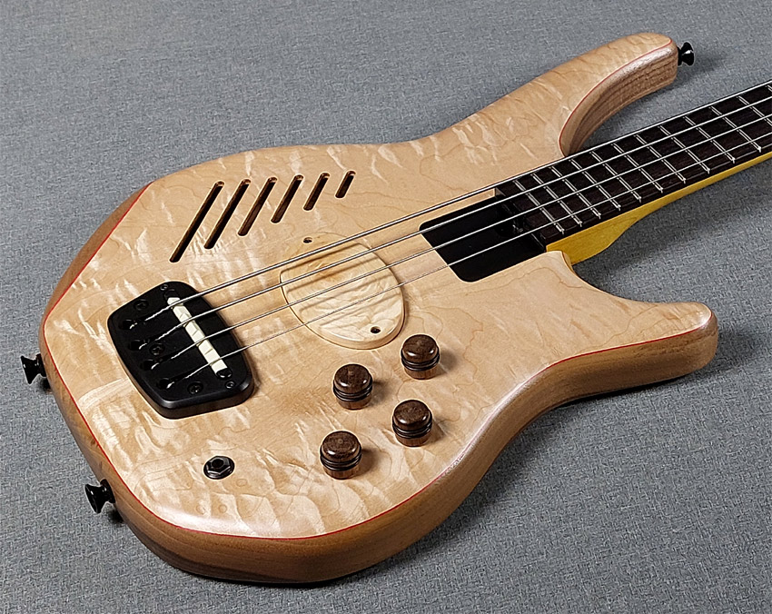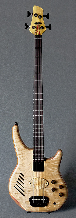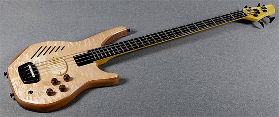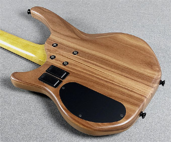 An acoustic chamber is machined into the body before the book-matched exotic facing is glue on. This allows the body to resonate and have a warmer, more "open" response. The three-piece maple neck has a dual-action truss-rod for ease of adjustment and two graphite strengthening bars for long term stability. |