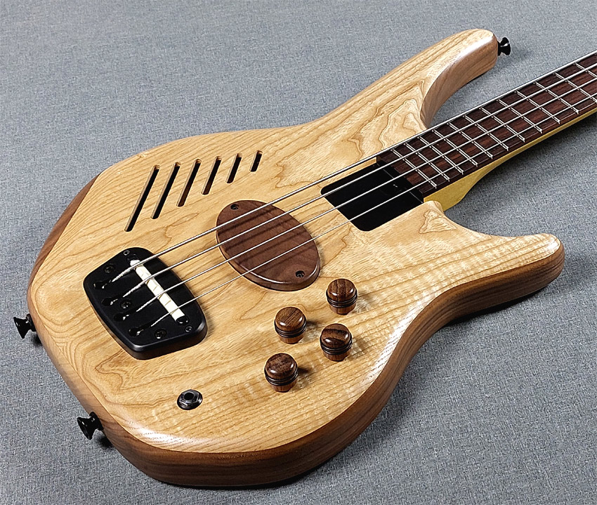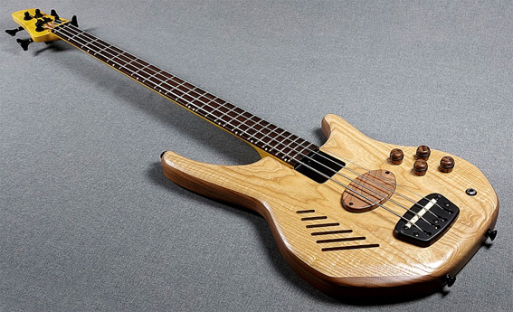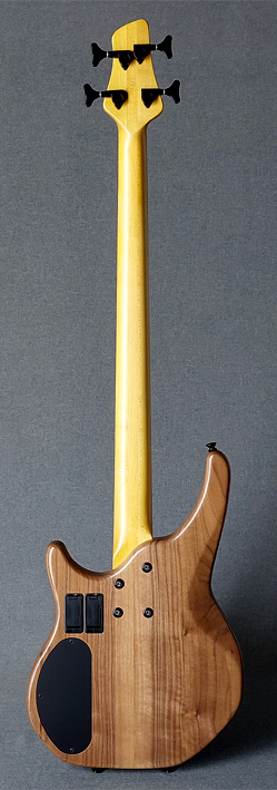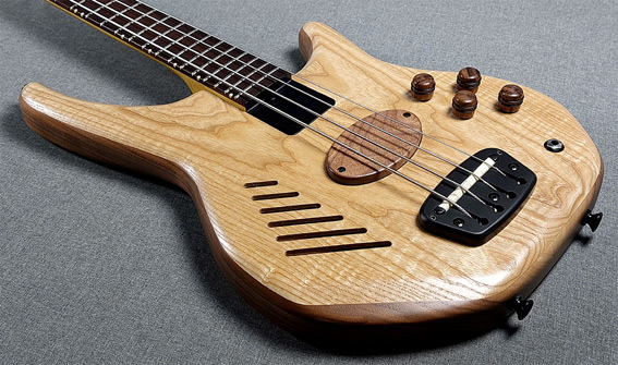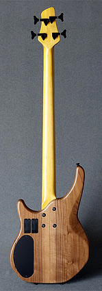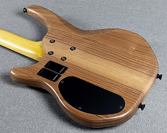 An acoustic chamber is machined into the body before the book-matched exotic facing is glue on. This allows the body to resonate and have a warmer, more "open" response. The three-piece maple neck has a dual-action truss-rod for ease of adjustment and two graphite strengthening bars for long term stability. |
