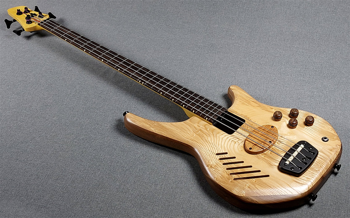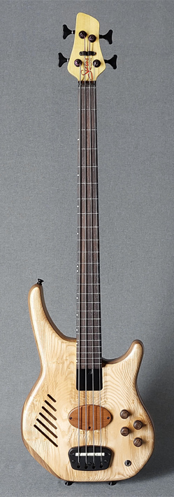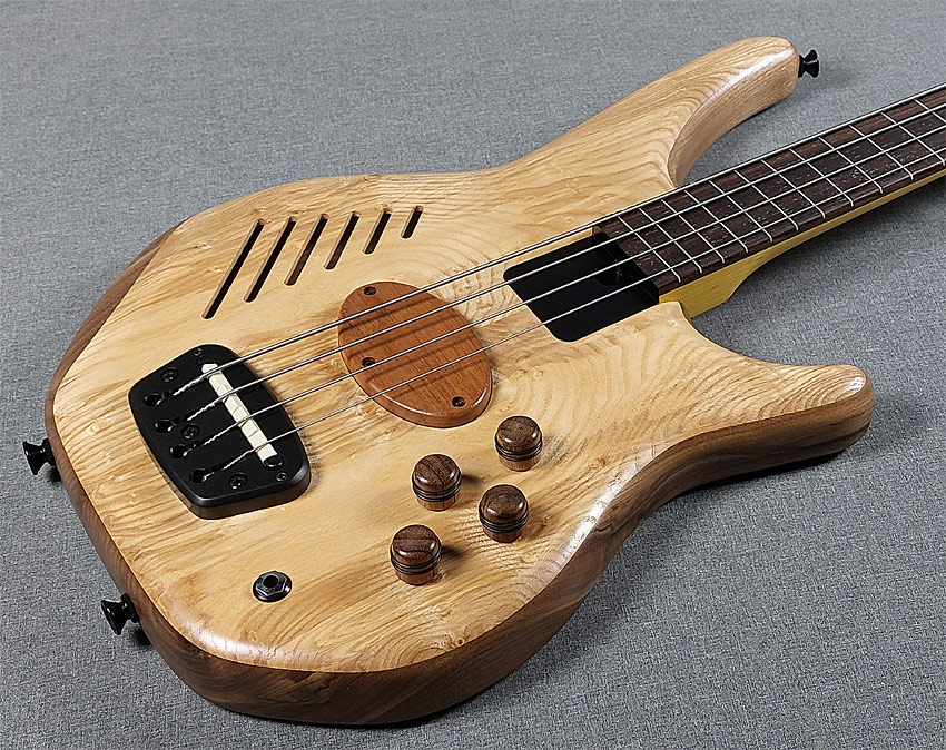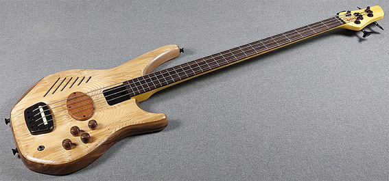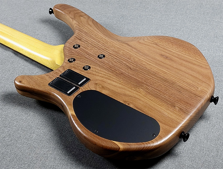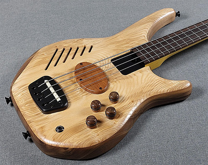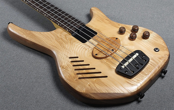 An acoustic chamber is machined into the body before the book-matched exotic facing is glue on. This allows the body to resonate and have a warmer, more "open" response. The three-piece maple neck has a dual-action truss-rod for ease of adjustment and two graphite strengthening bars for long term stability. |