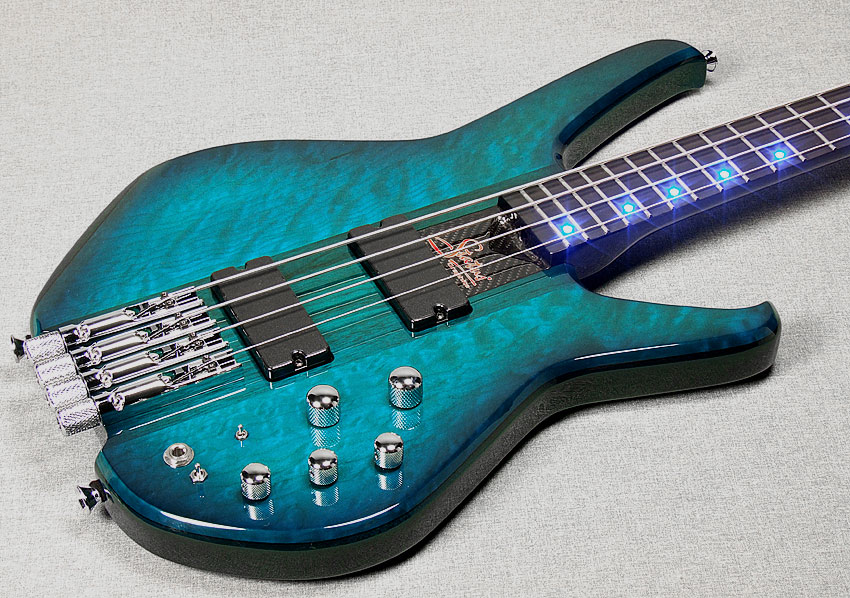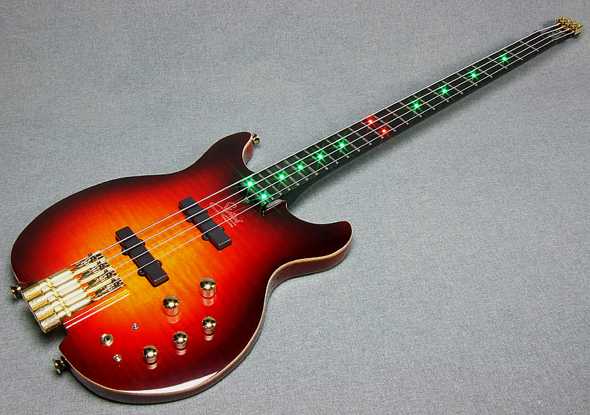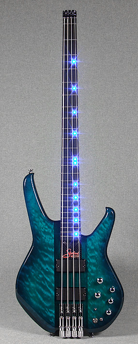 | KINGBASS ARTIST CUSTOM FRONT AND SIDE GREEN LED's Custom book-matched