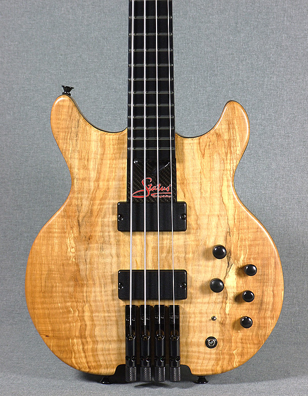 | S2-CLASSIC 6-STRING HEADED GRAPHITE THROUGH-NECK 2-piece alder body with book-matched figured maple facing 6-string woven graphite headless through-neck Dual-action truss-rod 34-7" (882mm scale), 24 frets Phenolic fingerboard Chrome hardware Mono-rail bridge units Standard 18mm string spacing 2 Status soap-bar pickups Three-band E.Q. with variable midrange frequency Master volume, pickup blend control 18 volt power supply | ||