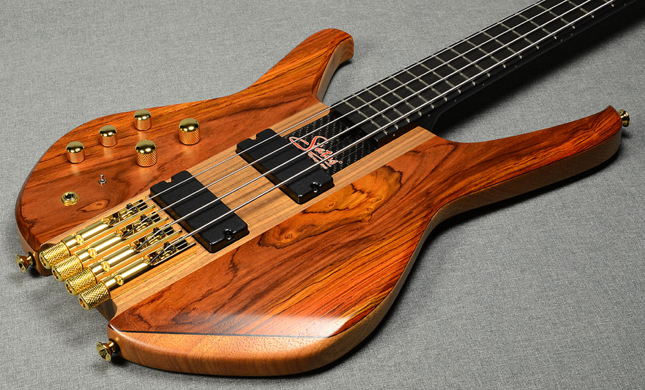 headless, through-neck, 4-string
