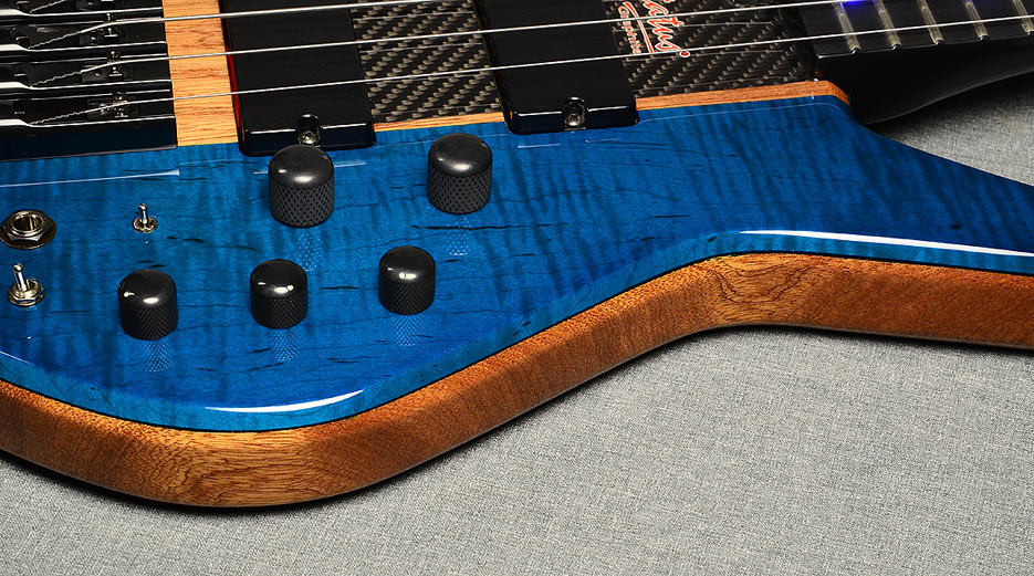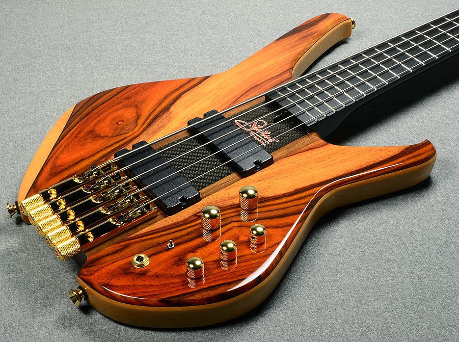 headless, through-neck, 5-string